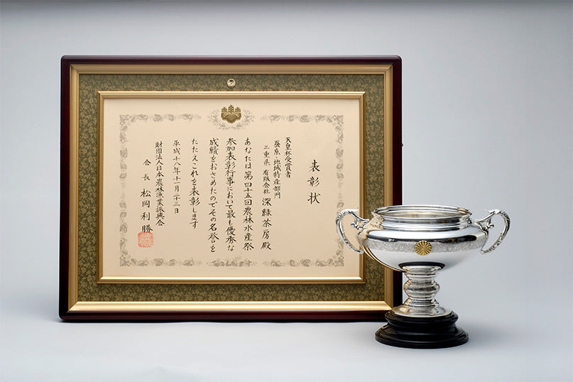 国内最高の賞。代表の父である松本浩が当時代表/茶師を務めた、(有)深緑茶房が受賞。「茶の品質が抜群」と評価されている。